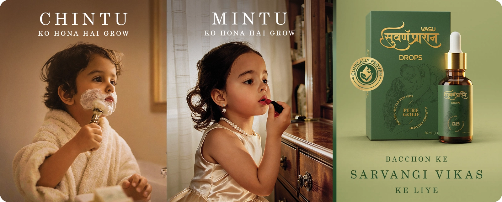 VASU Swarnaprashan Drop For Kids (Pack of 3 x 30ml) - Natural Formulated With Pure 24Ct Gold | Improves Strength & Immunity Booster For Kids (0-16 Years)