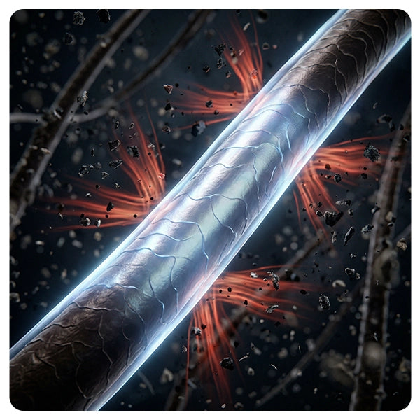 Hydroxyshield forms a protective barrier to lock in moisture and reduce hair damage.